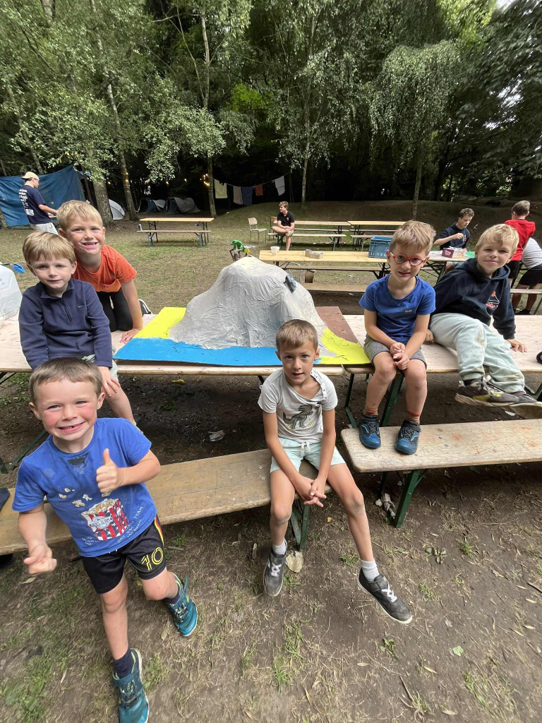 Vandaag startten we de dag met het in orde brengen van onze sjorringen, want de kampfoto’s stonden op de planning. Tussen het werken door genoten we van een snelle boterham met het klassieke stierenboter, een echte kampfavoriet! Daarna werd er nog even tijd gemaakt om de haren netjes te leggen, zodat iedereen er piekfijn uitzag voor de grote groepsfoto.