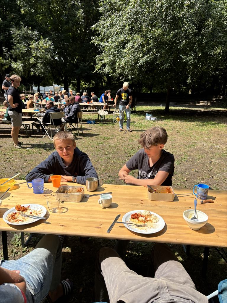 De dag begon met een uitbreiding van onze leidingsploeg: jonghernieuwers Rübn en Sem kwamen een dagje stage lopen bij ons. Na deze bekendmaking smulden we voor het eerst van het kamp van een echte klassieker: stuutjes met stierenboter.